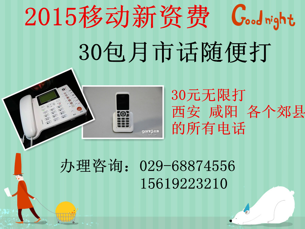30包月联通无限打 移动电信3分 8位号码