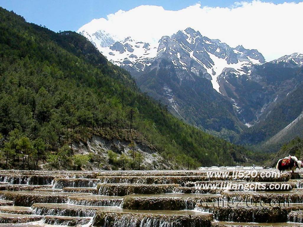 白水河景点为一条幽深的山谷,谷内林木苍苍,清泉长流,有的成潭,有的成瀑,静动有别,情趣独特。现在白水河边台上 建有停车场、餐厅、购物店、还有进云杉坪的索道站。